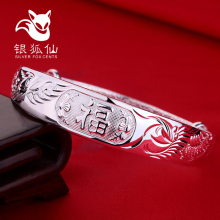 银狐仙足银手镯女纯银送妈妈生日韩龙凤福字简约正品9999银饰
