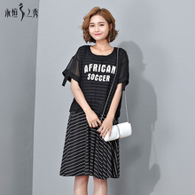 肥胖女装特大码胖mm套装裙17夏装新款胖妹妹加肥加大两件套连衣裙