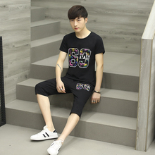 休闲运动套装男夏季青年潮流韩版短袖t恤青少年七分裤两件套衣服