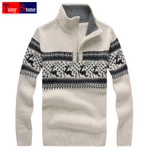 秋冬装新款男装青少年修身提花羊毛衫加厚立领针织衫男士休闲毛衣