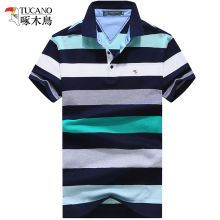 啄木鸟短袖T恤男翻领中青年半袖体恤 夏季新款修身纯棉条纹polo衫