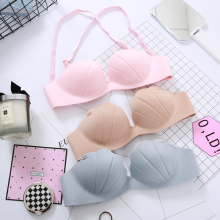 春夏季少女文胸聚拢小胸一片式无痕美背交叉性感贝壳模杯薄女内衣
