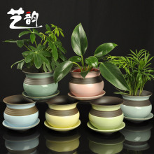 艺韵 花盆陶瓷花盆 绿植富贵竹土培植物 铜钱草盆有 孔多肉花盆