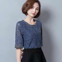 琪薇2017夏季新款 五分袖蕾丝镂空小衫宽松t恤