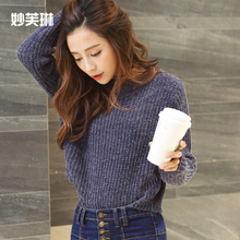 2017春季新款半高圆领宽松纯色韩版修身外穿打底短款套头毛衣女潮