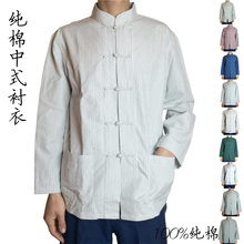清仓!中国风纯棉老粗布男士唐装 长袖棉麻中式男装打底衫居士服