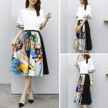 2017春装新款女装韩版修身上衣连衣裙两件套时尚显瘦印花套装女潮