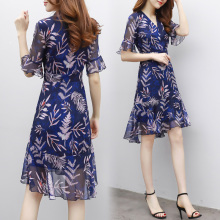 2017夏季新款女装韩版显瘦气质大码雪纺裙子印花鱼尾碎花连衣裙女