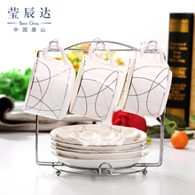 莹辰达 欧式正宗骨瓷21头咖啡具杯架 创意陶瓷咖啡具杯架