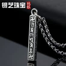 925银男士项链 泰银吊坠六字真言 挂坠 长款毛衣链霸气佛经文
