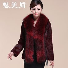 魅美娇整皮兔毛皮草外套中长款松紧长袖狐狸毛领海宁清仓特价女装