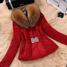 魅美娇 兔毛皮草外套短款长袖貉子毛领兔毛外套清仓特价