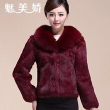 魅美娇整皮真兔毛皮草外套短款长袖狐狸毛领大码中老年妈妈款女装