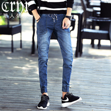男士秋季新款哈伦裤9九分裤英伦小脚裤修身韩版束脚青年牛仔裤潮