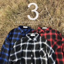 BIGBOY男士春装衬衫韩版ulzzang原宿风磨毛格子衬衣宽松长袖情侣