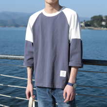 BIGBOY春夏装港风男士插肩袖宽松拼色T恤男青年中袖tee宽松汗衫潮