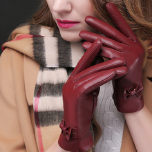 时尚皮手套 女 冬薄款 真皮 加绒加厚保暖开车羊皮 蝴蝶结 W23