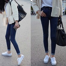 2016韩版新款春夏薄款学生高腰弹力修身显瘦小脚铅笔牛仔长裤子女