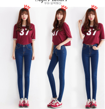 2016新款春夏韩版高腰显瘦学生牛仔裤女修身弹力小脚铅笔长裤子潮