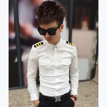 2016春秋新款时尚长袖修身白打底衫酒吧制服上衣空少夜店衬衫男潮