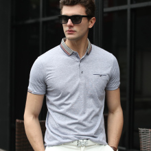 夏装中年男士短袖T恤翻领 商务纯色体恤男装半袖 棉质宽松polo衫