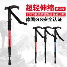 超轻登山杖T柄四节伸缩折叠手杖徒步爬山拐杖健走棍户外出游装备