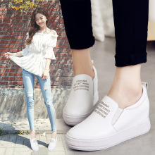 真皮透气小白鞋春季女2017新款百搭韩版内增高厚底夏季一脚蹬休闲