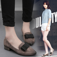 QNZY2016夏季新款韩版平跟尖头单鞋女浅口系带粗跟休闲百搭女鞋子