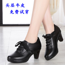 春秋季女鞋真皮粗跟高跟中跟浅口深口防水台女士单鞋系带职业皮鞋