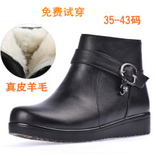 冬季新款特价防滑妈妈棉皮鞋羊毛中老年平跟短靴女靴真皮大码棉鞋