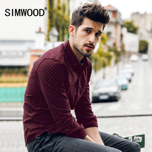 Simwood简木男装磨毛欧美休闲男士修身长袖衬衫简约圆点衬衣男