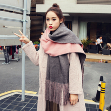艾尤 韩版秋冬新款加厚大格子韩版冬天保暖仿羊绒围巾披肩两用女
