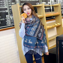 艾尤 2016秋冬新款民族风小鹿大双面仿羊绒披肩秋冬保暖围巾女