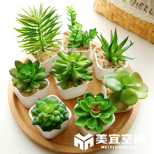 美宜迷你绿色多肉小盆栽套装花艺 绿植 仿真花瓶 假花落地摆放花