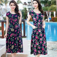 夏季韩版新款碎花棉绸裙女款连衣裙大码显瘦大摆中长款花色长裙字