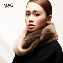 玫恩莲花冬季水貂加厚弹力渐变保暖编织围巾加长围脖韩版皮草脖套