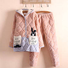 高档贝贝绒夹棉睡衣女生加厚卡通可爱小兔子个性连帽家居服套装冬