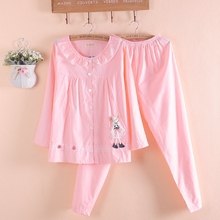 日系小清新纯棉双层纱布睡衣女春夏季薄款全棉长袖甜美家居服套装