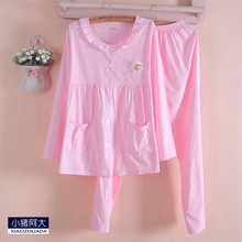 全棉卡通可爱长袖睡衣女春秋薄款夏公主梭织纯棉布斜纹家居服套装