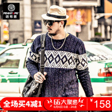 纺布者大码男装冬季加肥加大男士套头毛衣胖子针织衫秋款圆领毛衫