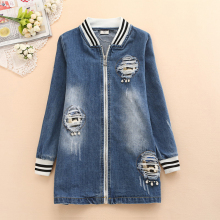 女童牛仔外套2017新款儿童女装风衣中长款韩版棒球服女大童春秋装
