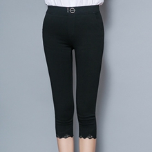 赵夫人家夏季蕾丝边七分裤修身弹力显瘦小脚铅笔裤中裤休闲女裤子