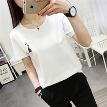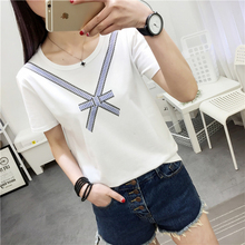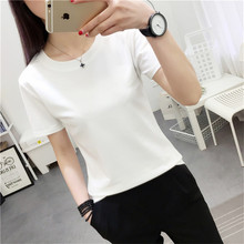 2017韩版新款夏装白色短袖t恤女宽松学生体恤大码上衣百搭打底衫