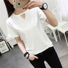 2017夏季新款短袖t恤女 宽松韩版学生简约百搭韩国纯棉大码上衣女