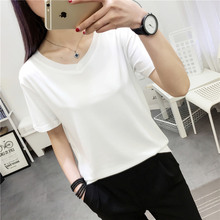 纯棉白色打底衫短袖T恤女 夏季女装大码宽松韩国简约百搭女士上衣