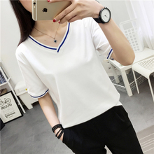 短袖白色t恤女夏季V领宽松简约百搭纯色打底衫纯棉韩版女装上衣