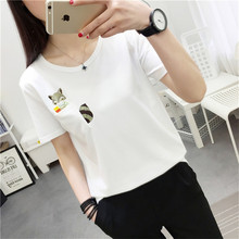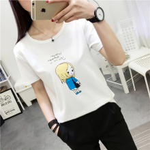 春夏装韩版学生卡通白色T恤短袖女体恤潮韩范宽松显瘦半袖上衣服