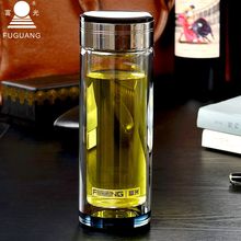 正品富光双层玻璃杯便携式水杯透明带盖过滤网茶杯男女士杯子包邮