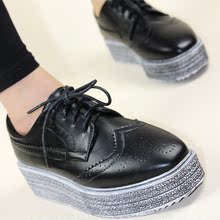 松糕鞋女春秋2017厚底新款欧美坡跟布洛克英伦风学生系带平底单鞋
