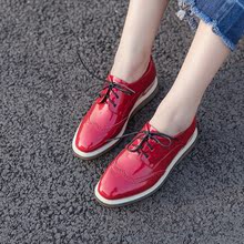 松糕鞋女春秋2017厚底新款平底单鞋女英伦风布洛克雕花系带小白鞋